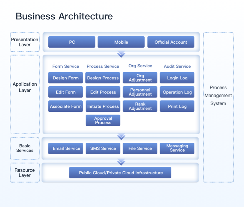JAJIs Operations Management System (OMS) is a comprehensive software solution designed to optimize and standardize business operations across a company. It leverages a systematic approach and intuitive graphical user interface to allow businesses to customize, scientifically plan, and monitor their operational processes in response to evolving project needs. This includes formulating data-driven management strategies, enhancing process efficiency and quality, and fostering seamless integration between individuals, departments, and systems. By streamlining workflows and eliminating bottlenecks, the system facilitates precise operation across applications, departments, and partner ecosystems. Through comprehensive process modeling, automation, management, monitoring, and optimization, it ensures efficient, standardized, and adaptable operations, empowering businesses to manage even the most complex workflows with greater intelligence.